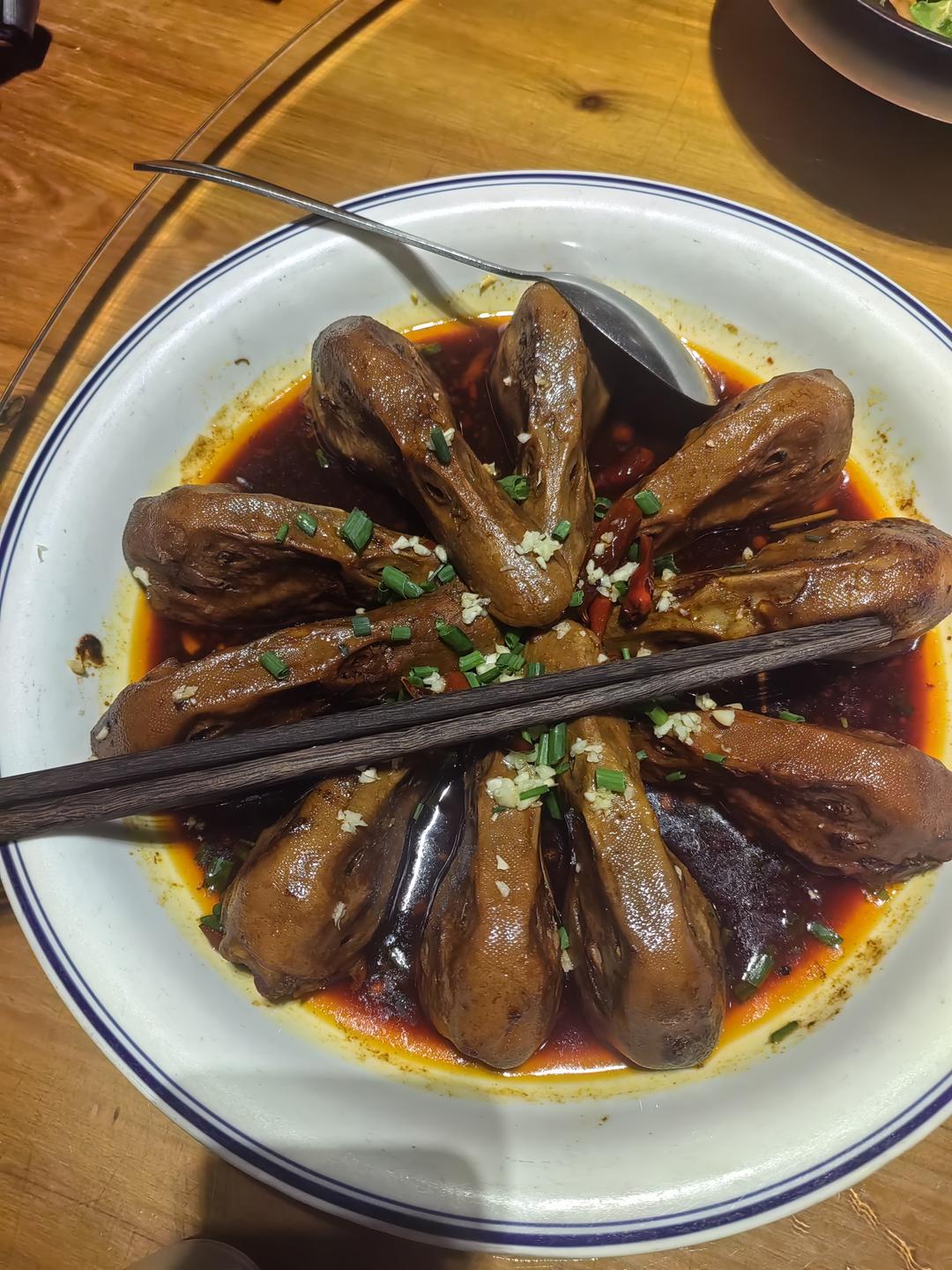 在街区特色食铺,媒体代表们品尝了衢州“国民美食”——“三头一掌”中的鸭头等美食。鸭头经秘制卤料长时间炖煮,鲜辣入味、肉质酥烂,独特口感让众人赞不绝口。“一口就尝出了衢州人的豪爽与巧思!”一位来自日本的媒体代表边吃边夸鸭头的美味,说是这是他吃过最好吃的鸭头。直言想把这份美味带回日本分享给日本民众,让他们感受到衢州的美食和中华饮食文化。