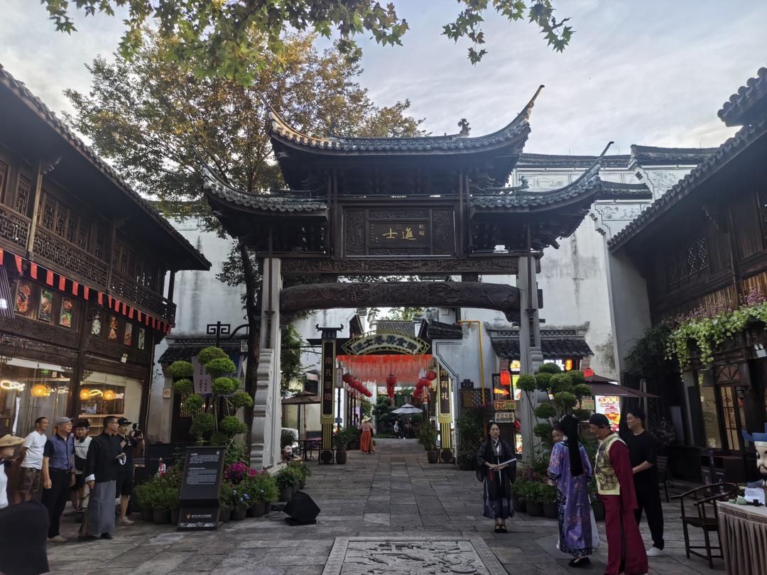 傍晚,代表们走进了衢州水亭门历史文化街区。作为衢州古城的标志性地标,这里保留着“三街七巷”的传统格局,白墙黛瓦的徽派建筑与民国风情屋舍错落分布,复建的天王塔与修缮完好的神农殿,在喧嚣中守着岁月静好。步入街区,烤饼的焦香、非遗手作店的巧思与商铺的吆喝声交织,游客与居民摩肩接踵,鲜活的市井气息扑面而来。