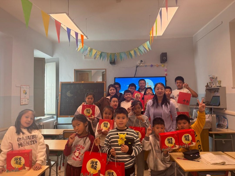 在中文学校的教室里,郑永杰与徐峰向孩子们送上了来自祖国及创会会长叶建毅等的中秋祝福并详细询问他们的中文学习情况。认为“语言是文化的载体,学好中文,就是守住家乡的‘根’与‘魂’。”鼓励孩子们既要努力融入当地生活,也要主动汲取中华优秀传统文化的养分,成长为连接中外文化的小使者。