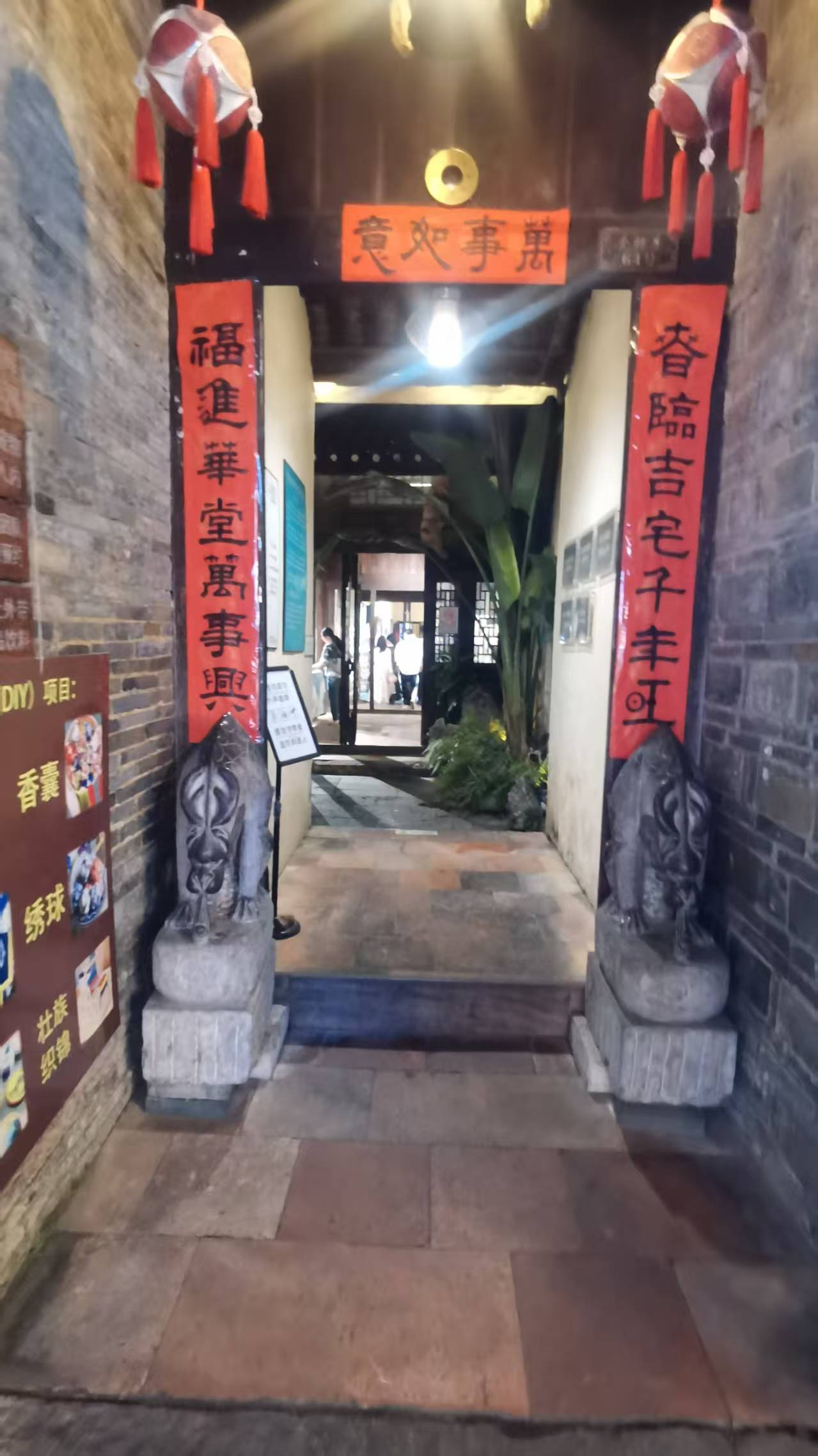 踏入景区,古色古香的建筑在灯光映照下更显韵味。青砖、青瓦、清水墙的传统院落式岭南民居以及骑楼建筑形式,在夜色中散发着独特的魅力。两旁的店铺琳琅满目,热闹非凡。金狮巷、银狮巷里,人来人往,欢声笑语不断。
