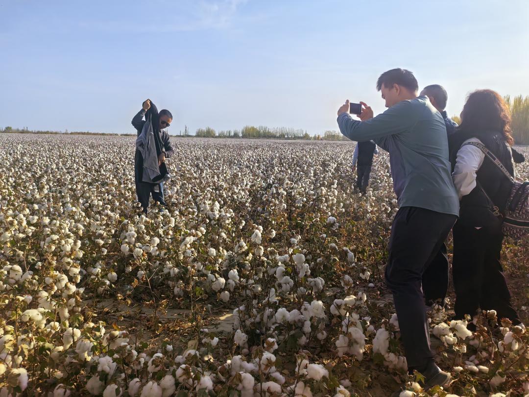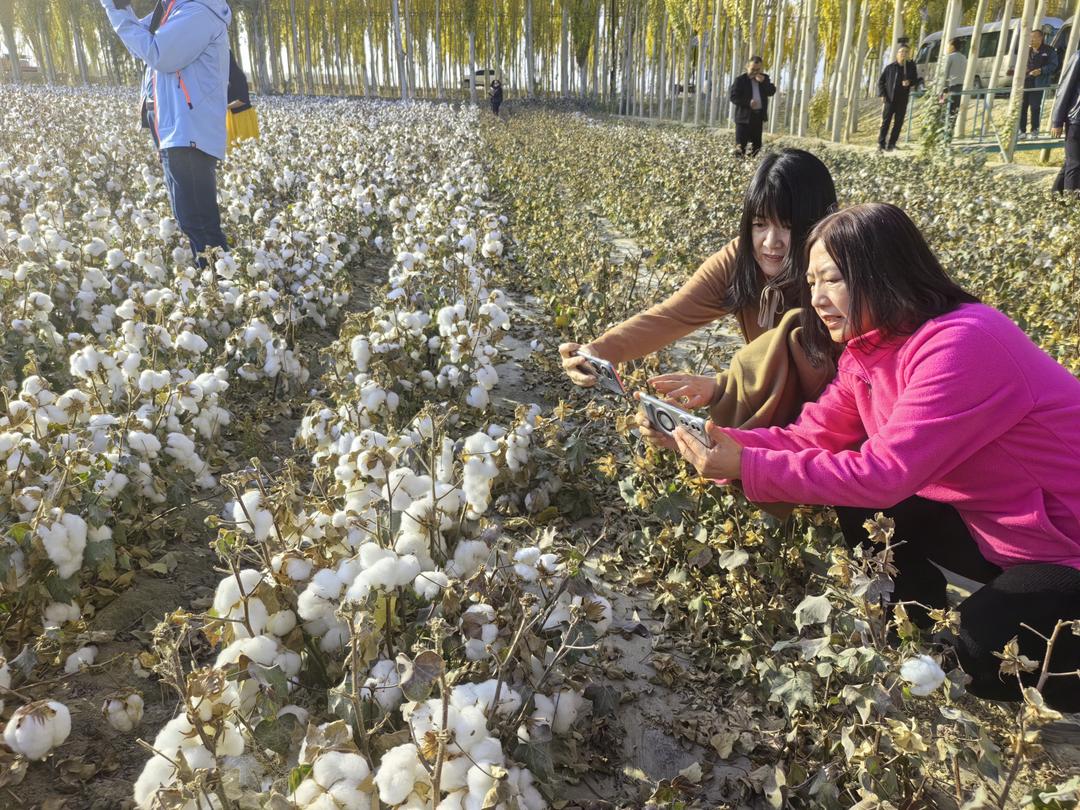 “这片棉田也太壮观了!”10月28日,“物华民丰”主题海外华文媒体采访活动进入第二天,采访团一行从新和县奔赴沙雅县古勒巴格镇尤库日库勒达西村,当连片洁白的棉花田映入眼帘时,代表们瞬间被眼前的丰收盛景打动,纷纷拿出手机、相机记录,有的俯身轻触棉朵感受柔软质感,有的漫步田埂拍摄“棉海”全景,兴奋得像发现新乐园的孩子,快门声与赞叹声在田间此起彼伏。
