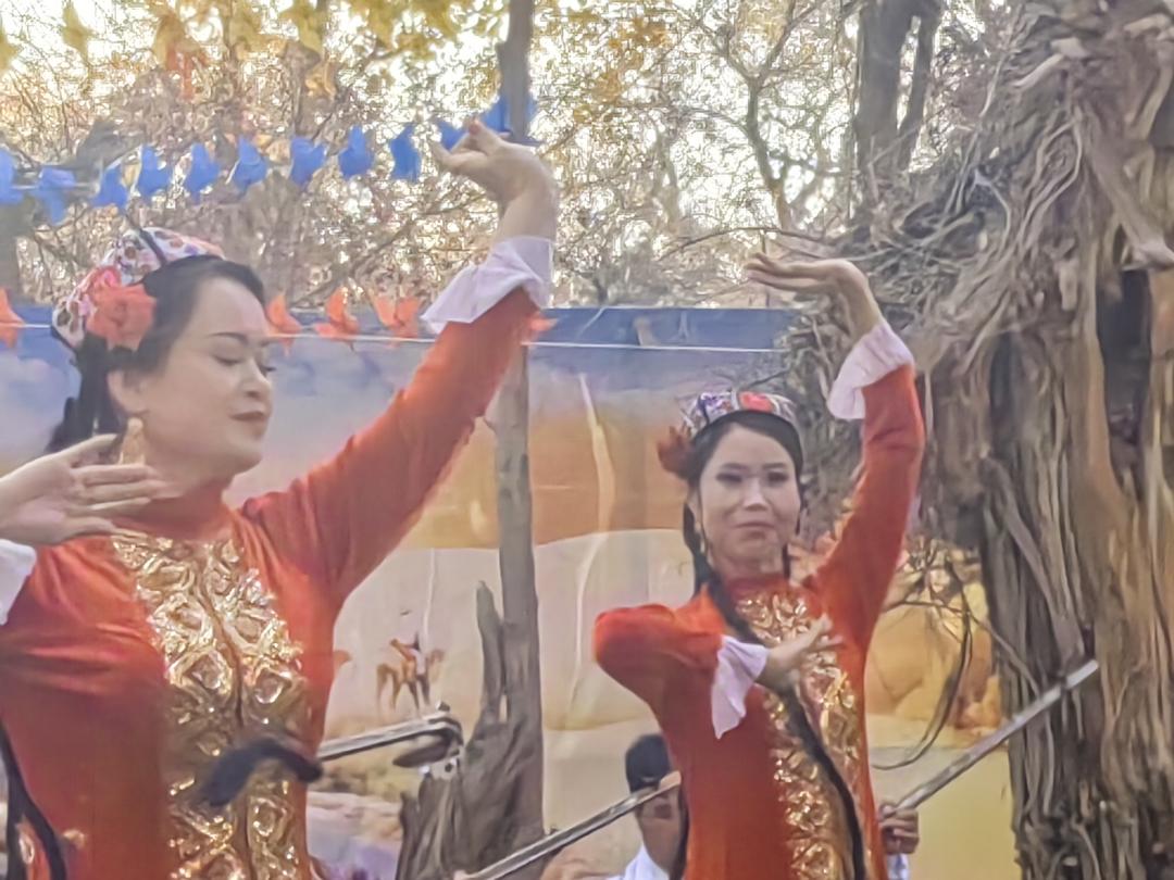 深入奥普坎村,连片的胡杨林如金色的海洋,阳光穿过枝叶洒下斑驳的光影,风过处,金叶簌簌作响,像是大地的私语。代表们穿行其间,或仰望参天古木,或轻抚粗壮树干,任风沙漫过衣角,在这片辽阔与壮丽中彻底放飞自我。