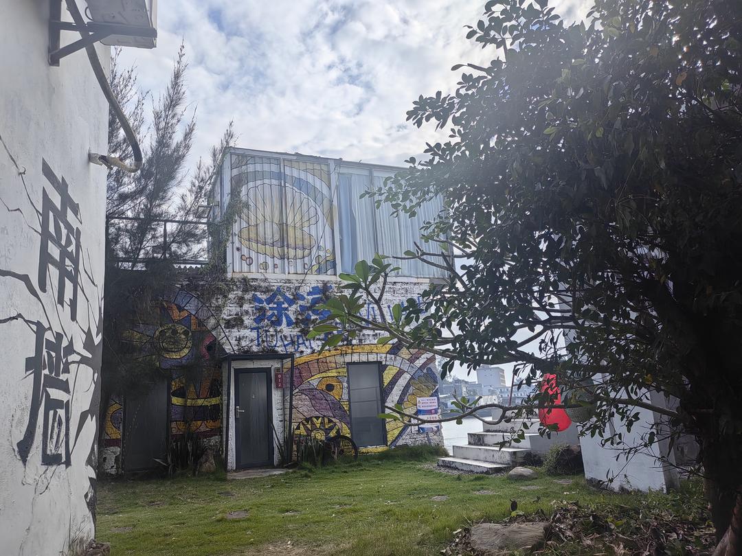 漫步艺术村内,古朴的建筑与艺术气息交融共生。原本用于养殖珍珠的旧厂房、老房屋,经过创意改造后焕发新生:斑驳的墙面被绘上海洋主题壁画,闲置的空间变身明亮的艺术工作室,青砖黛瓦的院落里点缀着雕塑作品,海风拂过,仿佛能听见艺术与历史的对话。艺术村规划建设总面积约30亩,一期投资1000多万元,现有从业人员20人,设有近50间客房的民宿、艺术展览区、研学基地及兼具前台功能的图书馆,图书馆分为靠近海边的A区与毗邻停车场的B区,布局精巧且充满人文气息。
