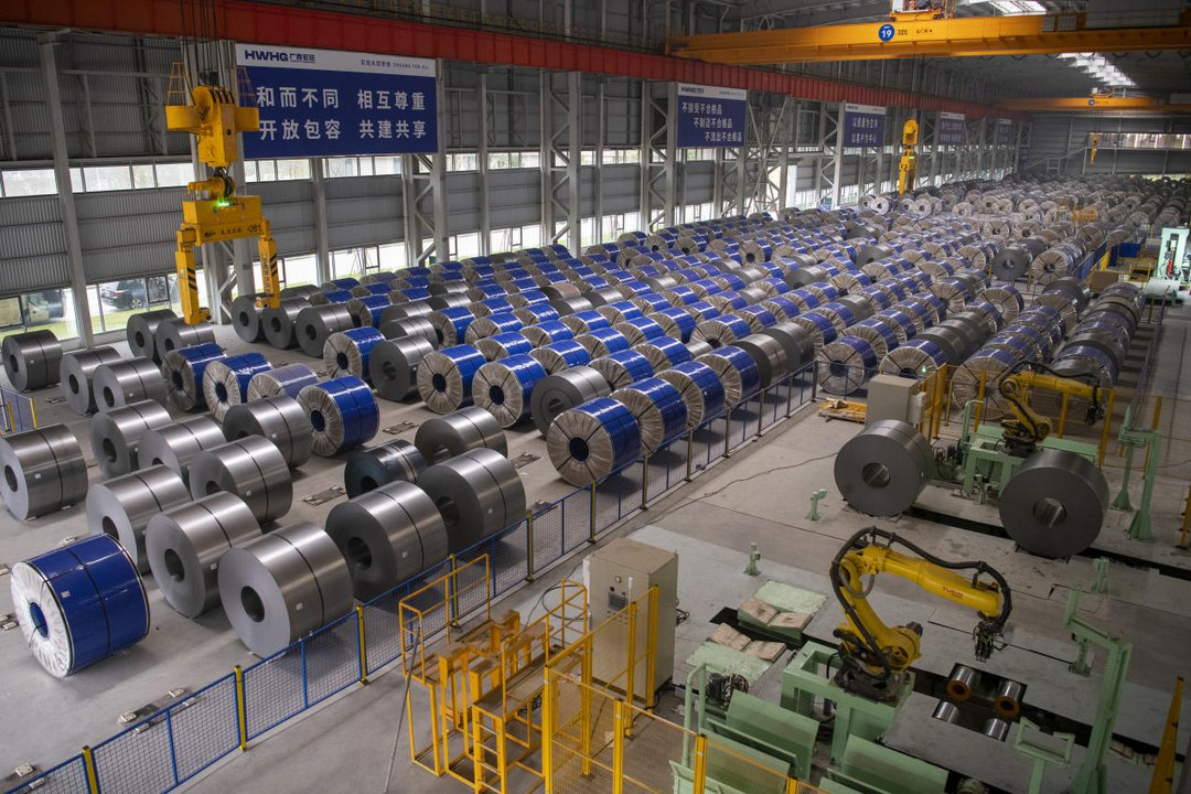 “我们与原料单位直线距离不到2公里,落户于此,正是看重这里‘近港临厂’的优势。”广西宏旺新材料科技有限公司副总经理林海涛介绍,广西宏旺由宏旺控股集团有限公司与广西盛隆冶金有限公司合资组建,占地面积约500亩,总投资超30亿元(人民币,下同),项目全面达产后,将形成约200万吨高性能硅钢及高端镀锌板材的年产能规模,预计年产值约100亿元,项目推进速度远超预期,从开工到一期项目成品下线仅用9个月。