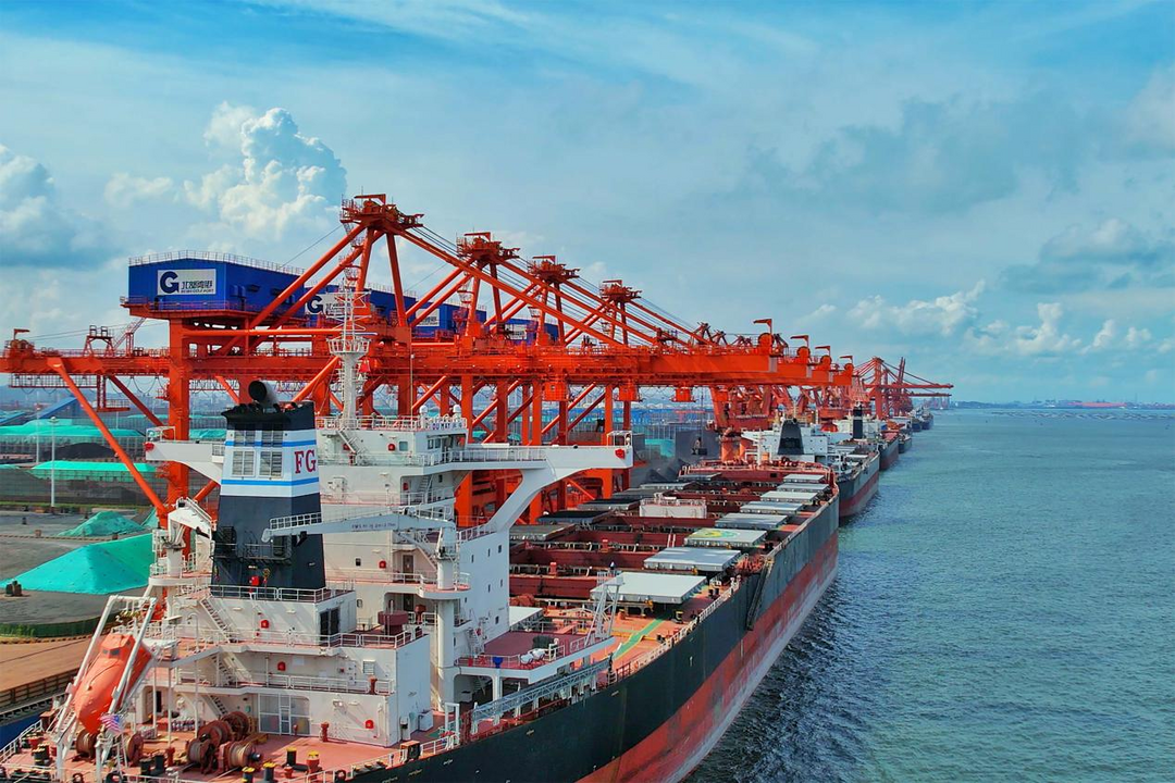 黄志仁介绍,作为支撑临港工业的“原料动脉”,防城港码头主要运输货物包括铁矿、煤炭、粮食、硫磺、化肥、铝土矿等大宗干散货,其中外贸进口货物占比达74%。2025年上半年,防城港港口货物吞吐量已突破1亿吨,创历史同期新高。