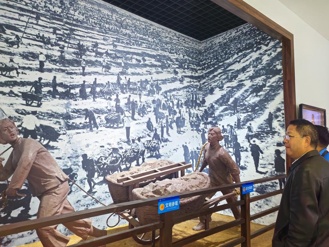 而展馆中最令媒体代表们动容的,是关于新汴河的展陈篇章。史料记载,豫皖苏三省人民历经三冬四春,攻坚克难建成全长127.1公里的新汴河。这条人工运河自宿州城区西北戚岭子截引沱河,向东穿越京沪铁路,流经灵璧、泗县及江苏泗洪,最终注入洪泽湖溧河洼,彻底终结了淮北地区长期受水患困扰的历史。