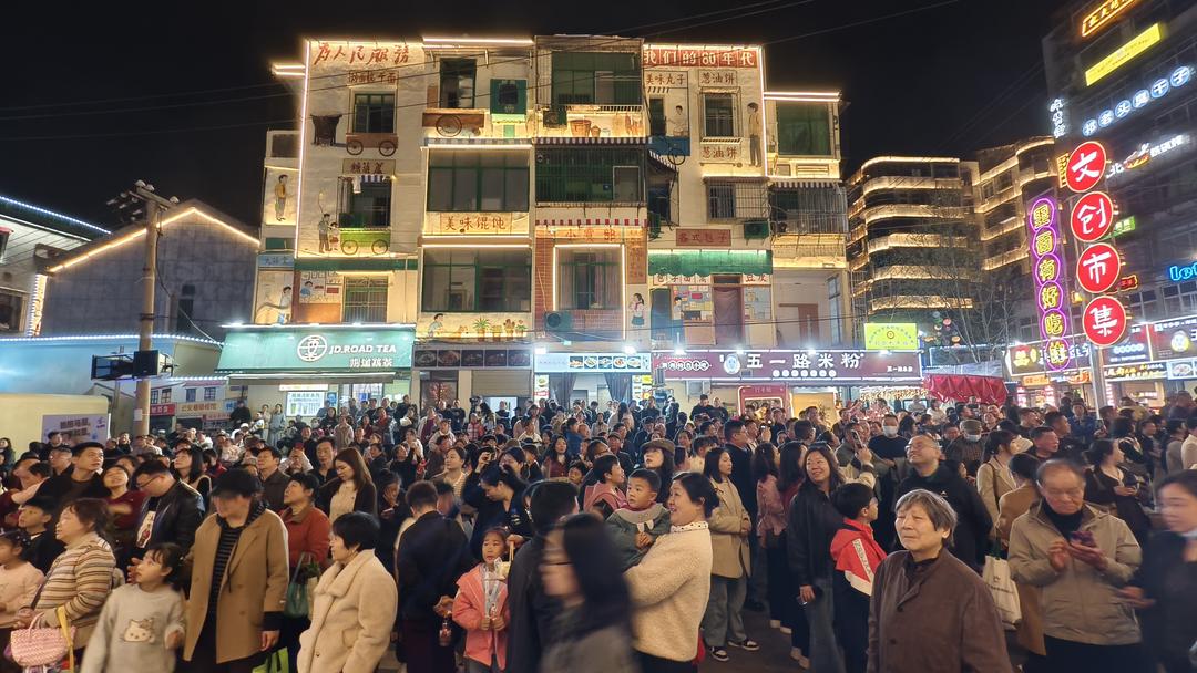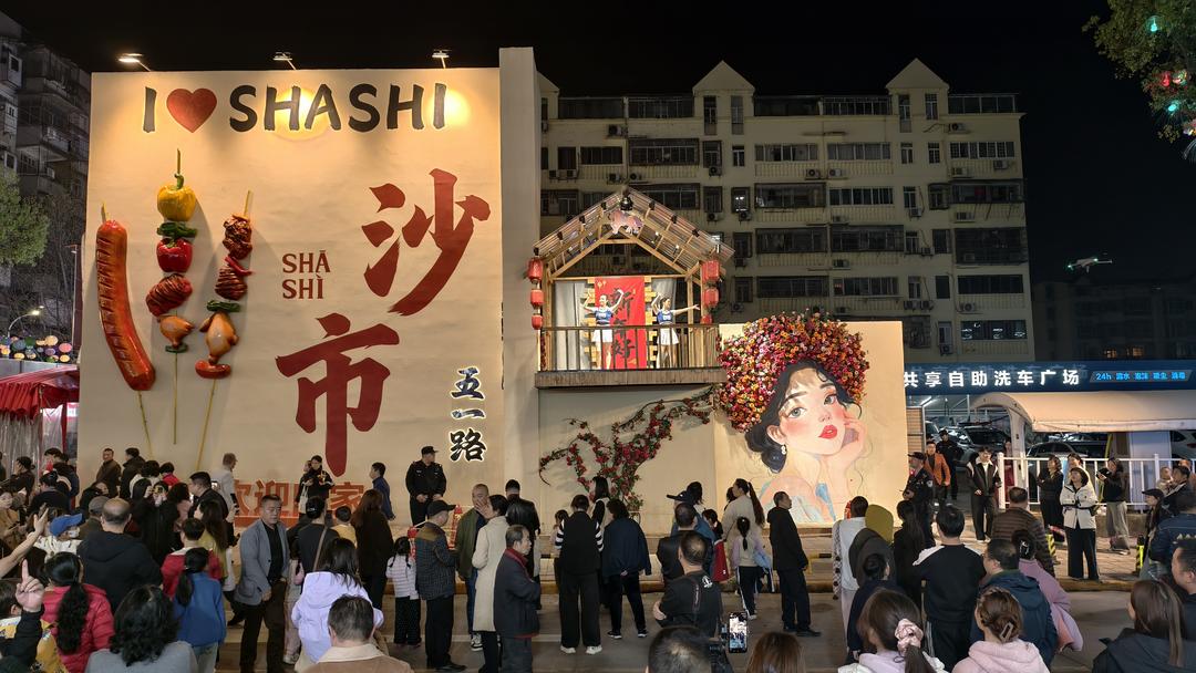 据介绍,让老街重焕生机,离不开政府的匠心改造。沙市区摒弃大拆大建的模式,秉持“留改拆增并举”的理念,以“绣花式”微改造唤醒老街活力。改造中,不仅修缮路面、规整管线、新增停车场,解决了过往拥堵、停车难的问题,更精心打造近千平方米年代主题墙绘,复刻老沙市的市井风貌,让旧时光的印记清晰可见;创新将居民闲置阳台改造成“阳台小剧场”,搭配街头侧舞台,让文艺表演与市井烟火完美融合。同时,政府出台前三年免租等扶持政策,留住本土特色小吃商户,坚守平价亲民本色,让老街既保留原本的生活肌理,又增添了时尚与文化气息,真正实现了旧街区的华丽蝶变。