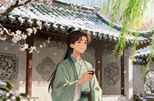 佳节良辰总能牵动人心底的温情,晴暖的春日里正宜踏赏新阳。杯中醇厚的美酒让人心生微醉的怯意,寒凉的触感也让人感知到青瓦上凝结的霜华。