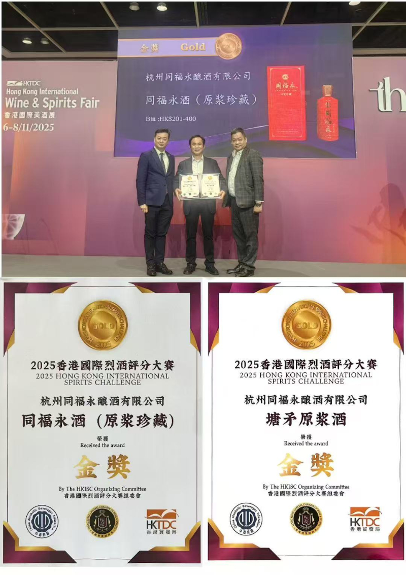 22025年5月,产自浙江杭州的同福永53度原浆白酒荣获IGC国际烈酒(香港)大赛银奖,并受邀参加了5月19日在广州举办的第34届中国(广州)国际名酒展览会暨IGC国际烈酒(香港)大赛颁奖典礼;2025年11月,同福永53度塘茅(酱香型)及同福永43°原浆珍藏双双荣获2025香港国际烈酒评分大赛金奖,并受邀参加了在香港会议中心举办的国际美酒展暨香港国际烈酒评分大赛颁奖典礼——能够取得如此惊艳的奖项,这在浙江白酒史上是史无前例的。业界似乎已经察觉到:浙江白酒实现“弯道超车”的一幕已经开始呈现,而即将过去的2025年很可能就是浙江改变中国白酒市场竞争格局的元年。