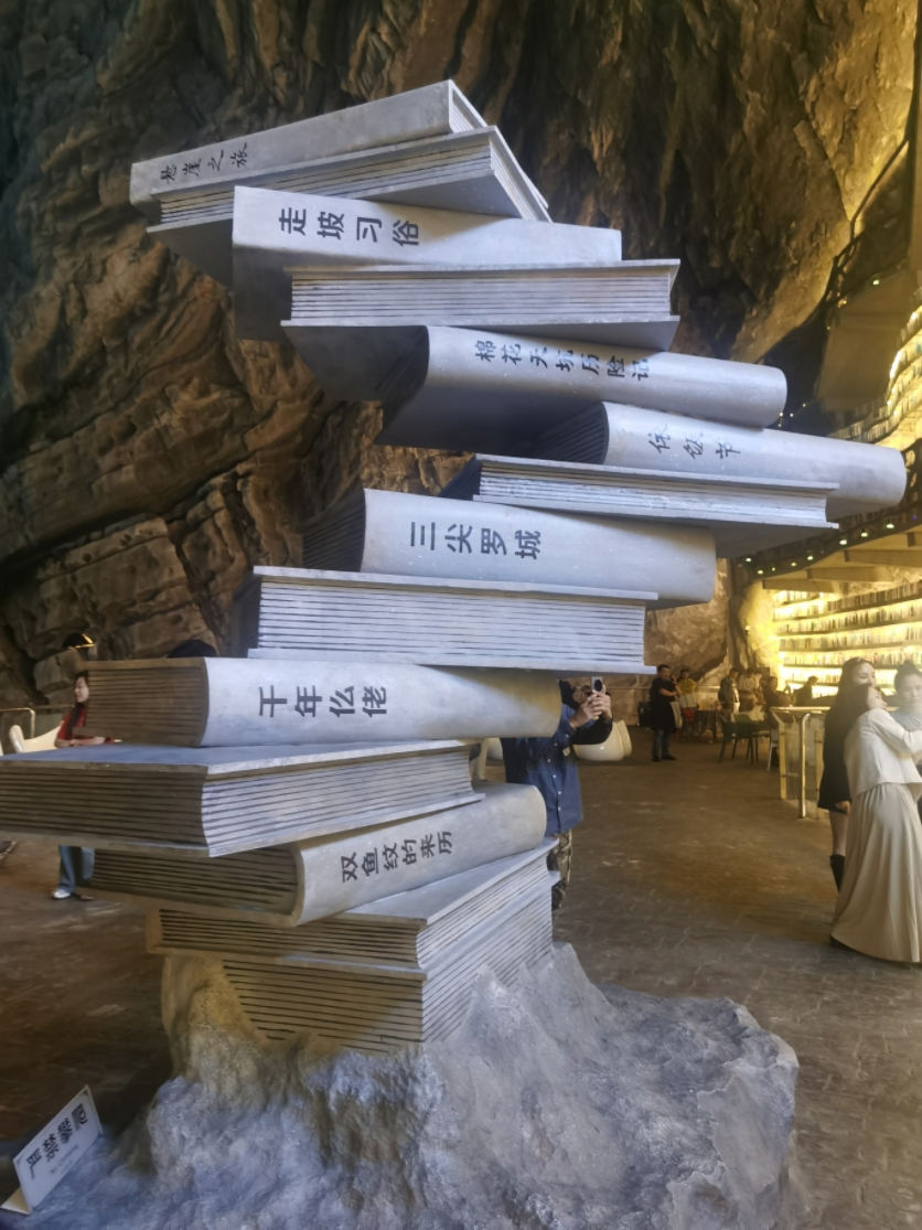 走走停停,停停摄摄,终于,我们来到了悬崖书店的大平台上,平台上已经聚集了不少游客,他们有的手持相机,兴奋地捕捉着每一个精彩瞬间;有的脸上洋溢着开心的笑容,沉浸在这独特的氛围之中。悬崖书架上摆满了各种各样的书籍,从经典文学到现代科技,从历史传记到艺术画册,应有尽有。在这里,如果你有时间,又有自由,就可以尽情地沉浸在知识的海洋中,在没有屋顶的悬崖书店让时光变得慢下来,忘却尘世的喧嚣与纷扰。