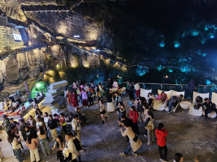 在开发这一项目的广西悦投文旅集团董事长何志坚介绍,国庆期间,悬崖书店人山人海,堵车5公里,还有天坑万人合唱《后来》,那种感受真的很震撼。他说:“我们通过发展乡村旅游,村民变成了工作人员。游客来体验民族文化,村民也能增加不少收入。”