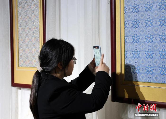 图为柬埔寨媒体人在记录壮锦纹样。中新社记者 林馨 摄