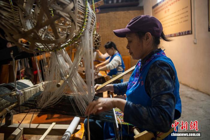 图为忻城当地织娘在织锦。中新社记者 翟李强 摄