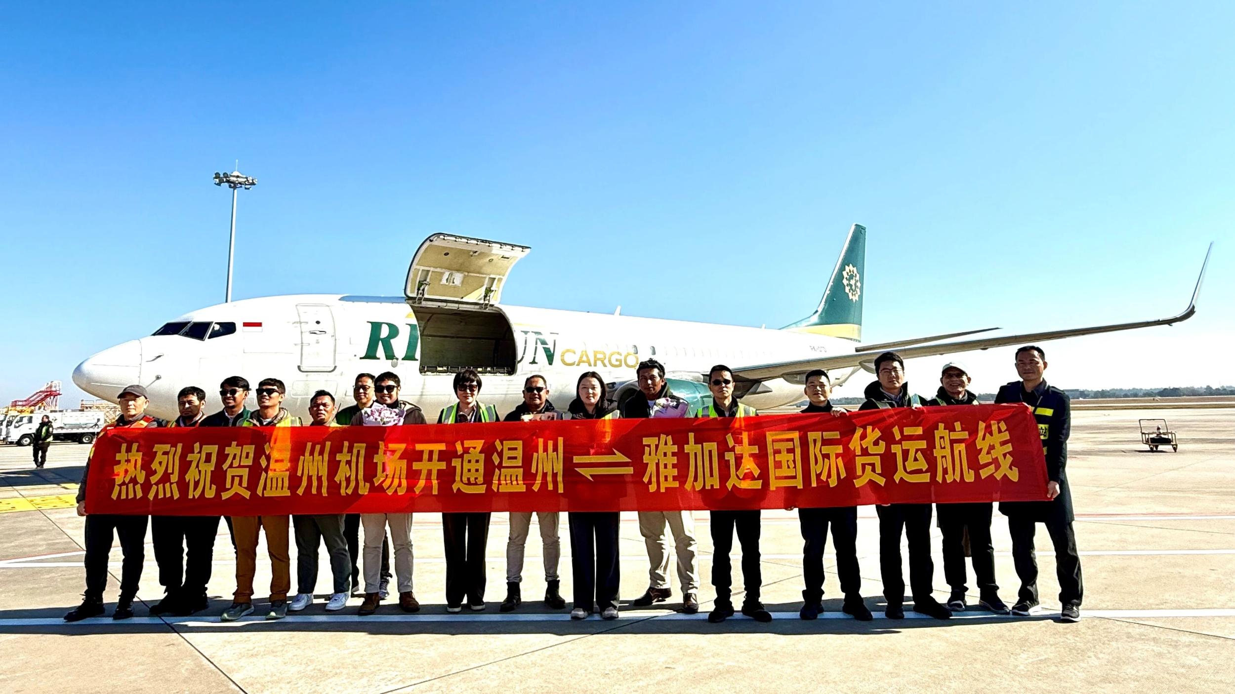 温州网-《温州日报》讯 1月7日,温州雅加达国际货运包机航线在温州龙湾国际机场(温州机场)成功首航,标志着温州与印尼主要城市实现航空货运直连“零突破”。
