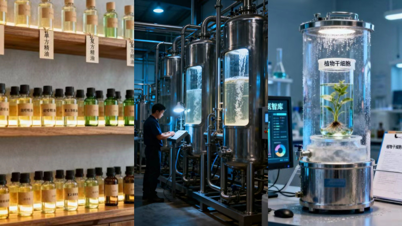 2. 科技核心:超临界 CO₂ 低温萃取技术,亚临界氟低温萃取技术。这两项技术是我们确保产品活性与纯净度的“芯片”,直接决定了使用时的吸收度与有效性。技术优势:在低温下萃取,能近乎完整地保留植物中的挥发性活性成分,避免传统高温萃取导致的成分破坏,确保精油“鲜活”。应用成果:已成功研发超临界、亚临界萃取了1000多种植物精油,并开发了20 款衍生产品,并以此技术开发了300多种本草复方精油,为产品创新提供了庞大的“气味与功效数据库”。