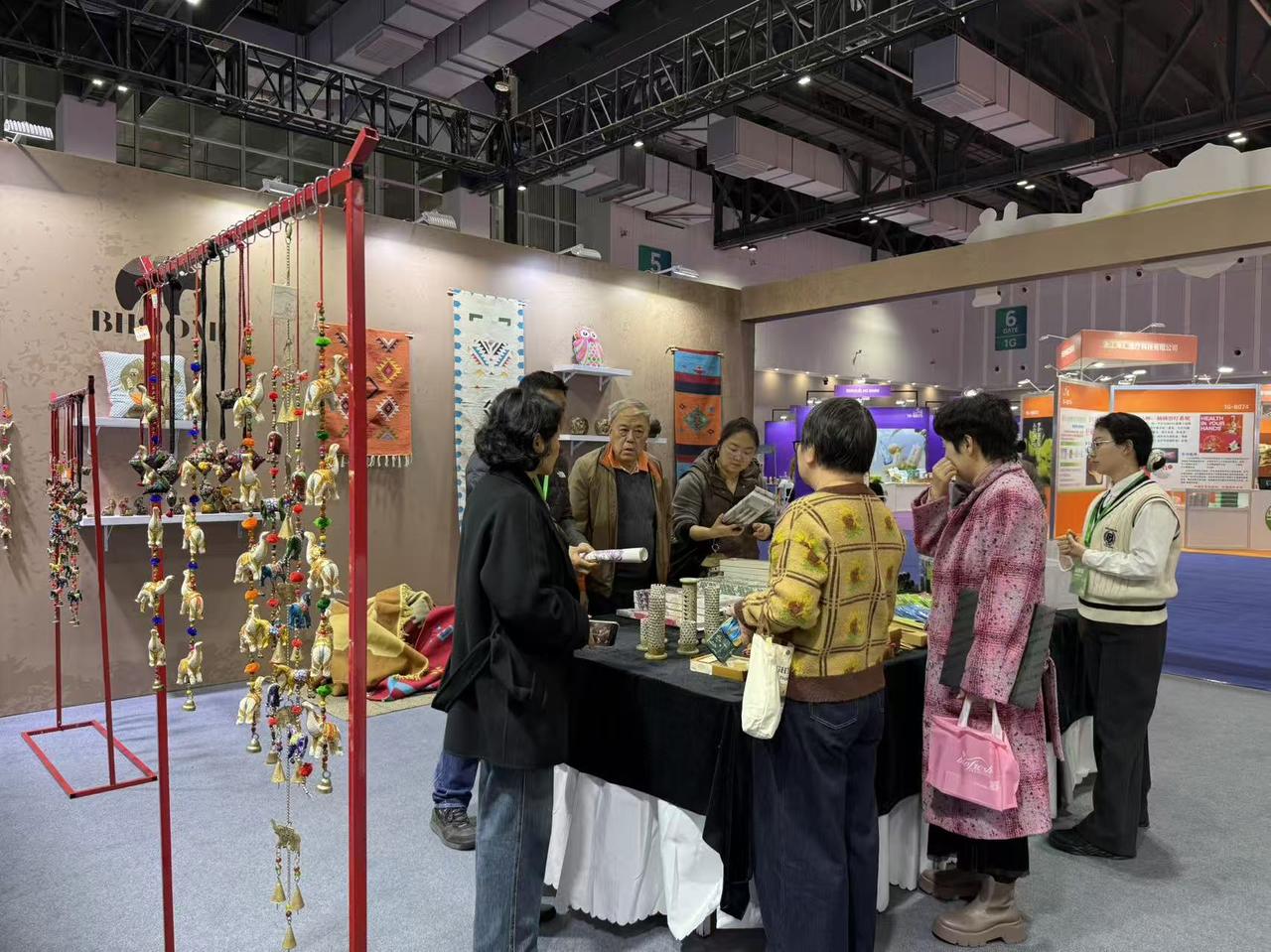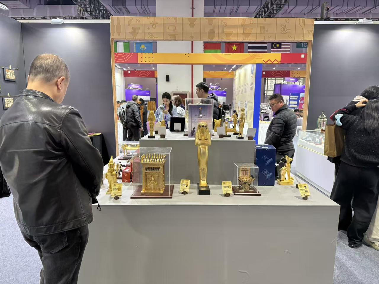 金砖国家进口专区,展示了600多个单品,集中呈现金砖国家特色商品和国别文化。埃及的绿松石、官方文物复刻品、纸莎草艺术品,印度的香料、挂件,乌兹别克斯坦的手工彩绘陶瓷,每一件都吸引着观众驻足端详。