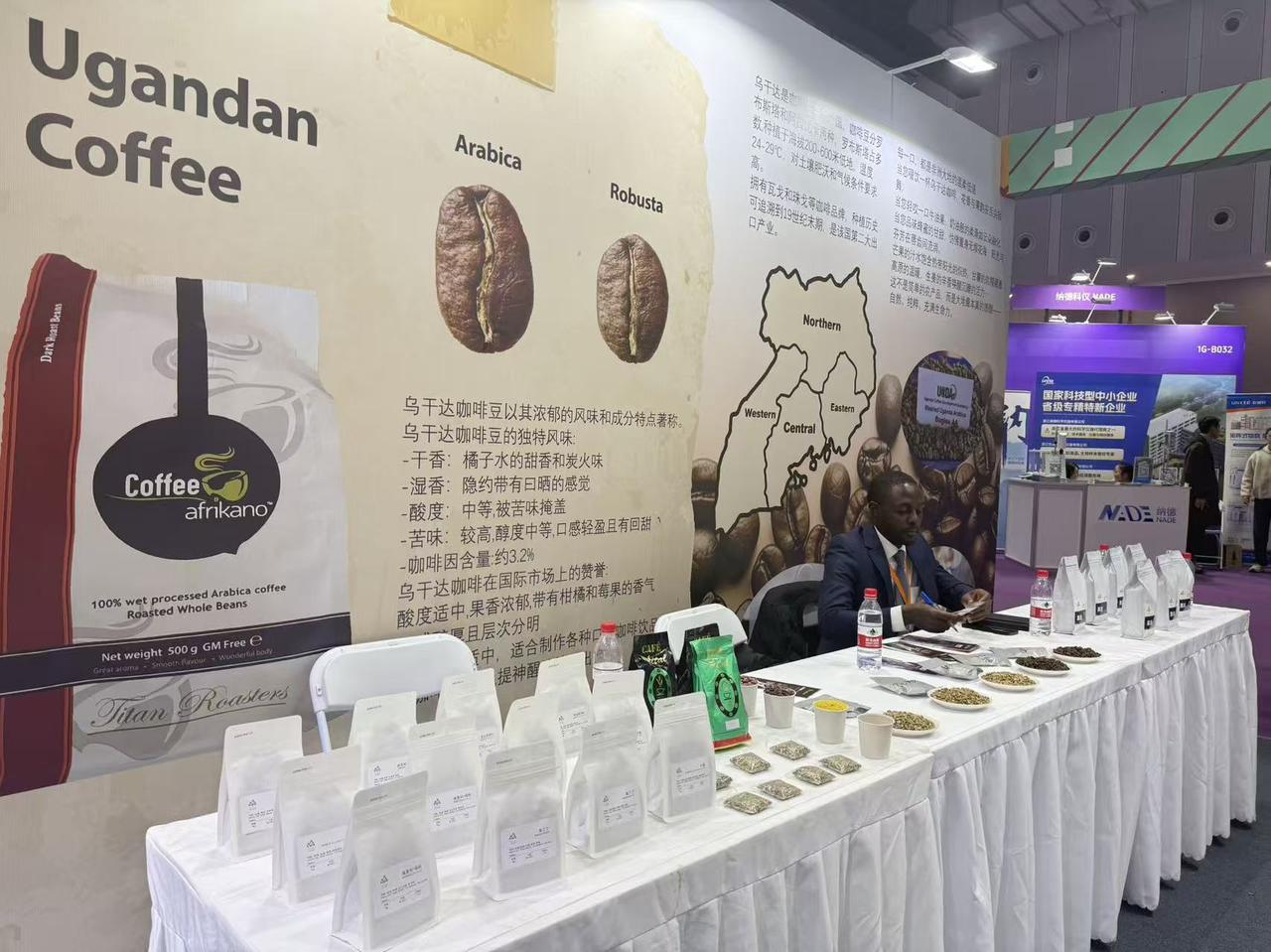 在不远处的咖啡展位,来自乌干达的商家雅各布·卡兰齐,同样是第一次来华。乌干达是咖啡主要生产国之一,拥有多个咖啡品牌,咖啡也是该国第二大出口产业。“中国的市场很大,这里的大门正在对我们敞开,我们想用咖啡在这里打开知名度,如果乌干达的咖啡能更多出口到中国,两国的消费者和出口商都会受益。”他告诉记者。