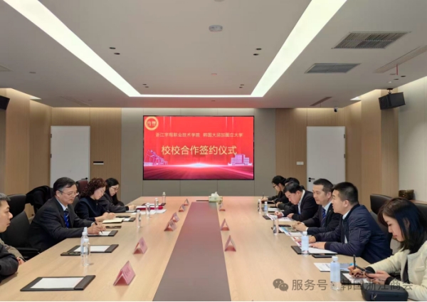 12月19日,在“人工智能赋能职业教育国际创新大会”期间,韩国浙江商会与韩国大邱加图立大学、浙江宇翔职业技术学院代表共商合作。在韩国浙江商会的积极促成下,韩国大邱加图立大学与浙江宇翔职业技术学院现场签署校校教育合作协议,标志着双方在国际化办学与人才培养领域迈入实质性合作阶段。