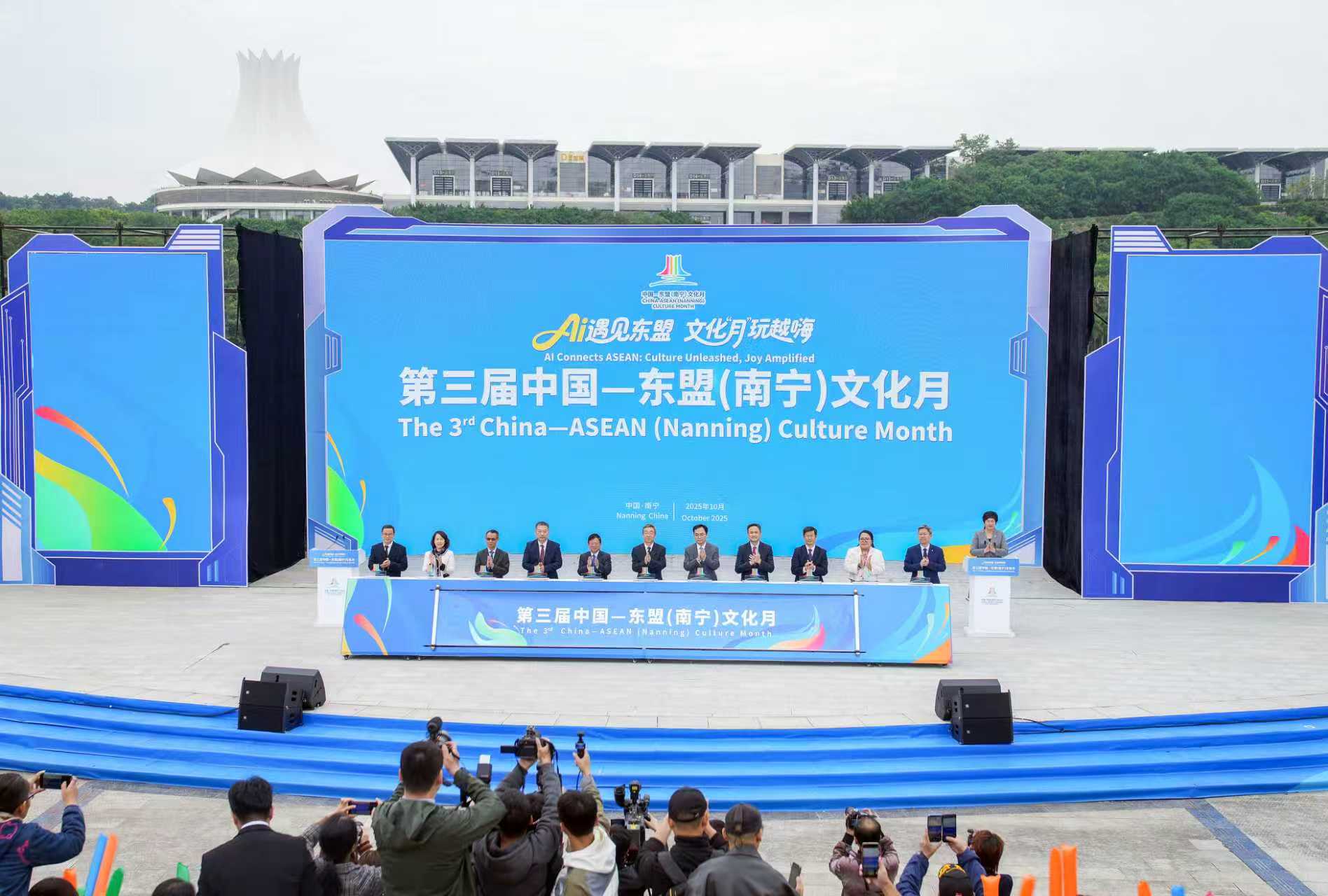 今年是中国—东盟人文交流年。本届文化月由中共广西壮族自治区委员会宣传部、中国—东盟中心指导,南宁市人民政府主办,中共南宁市委员会宣传部、南宁市文化广电和旅游局承办。活动以构建更为紧密的中国—东盟命运共同体为主线,搭建中外人文交流合作平台,促进中国与东盟国家的“硬联通”“软联通”“心联通”;以“AI遇见东盟,文化‘月’玩越嗨”为主题,坚持艺术化、大众化,突出市场化、产业化,打造文旅消费新场景,拉动文化新消费,力促乐民惠民,以文化赋能高质量发展。