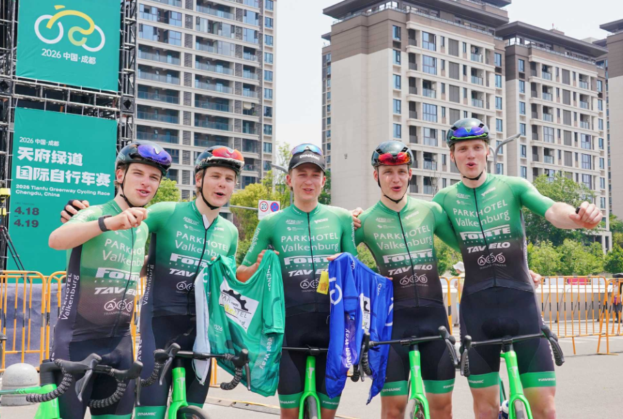 本网讯|4月19日,2026中国·成都天府绿道国际自行车赛(以下简称天府绿道自行车赛)在成都东部新区三岔湖完成收官之战。瓦尔肯堡酒店洲际队成为本次赛事最大赢家,继昨日拿下团体计时赛冠军之后,今天该车队车手BROMMERSMA Elmer不仅夺得个人总成绩第一,还同时拿下了代表冲刺王的蓝衫。