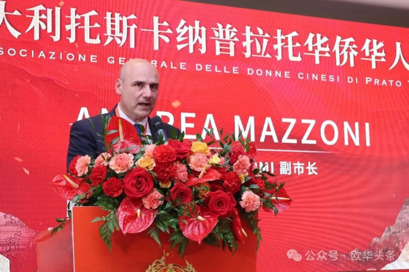 托斯卡纳大区议员、普拉托市前市长Matteo Biffoni致辞。他表示,非常高兴见证这一重要时刻。作为曾经长期在普拉托工作的市长,他深知华人群体为当地经济与社会发展所作出的贡献。普拉托妇女总会的成立,不仅象征着团结与自信,也体现了华人女性在社会生活中日益重要的角色。他希望这一组织成为沟通的桥梁,在促进理解、包容与合作方面发挥积极作用。