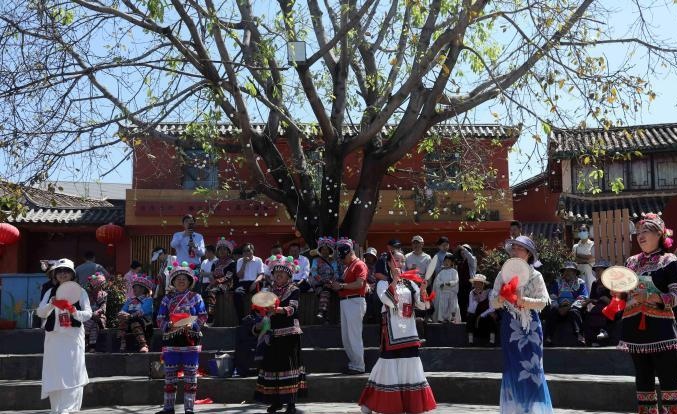 在仁和区迤沙拉村,红墙窄巷间,谈经古乐婉转悠扬。这门有数百年历史的技艺,如今是游客最喜爱的文化体验。“忙的时候,一天能演三四场。”七旬彝族老人毛光富说。