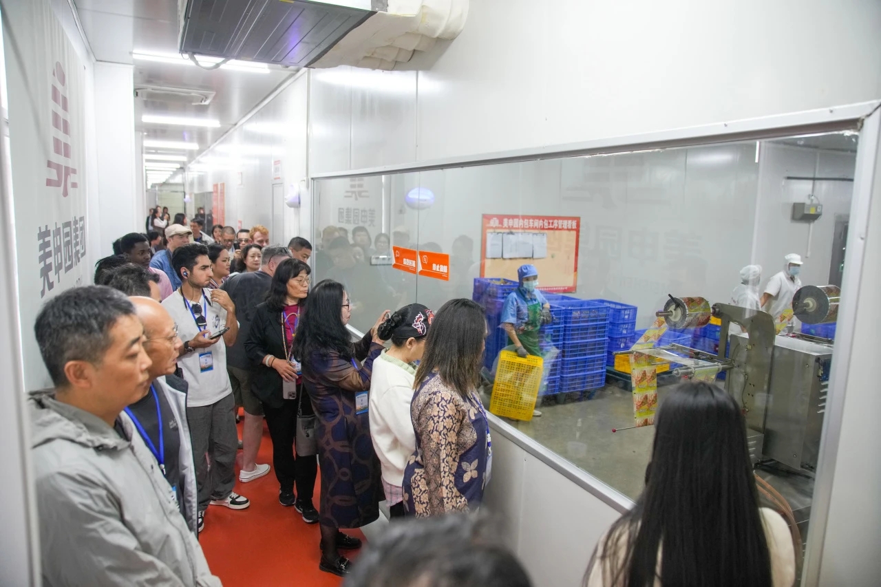 图为媒体记者参观位于柳州市柳江区新兴工业园的广西美申园食品科技集团有限公司。陈冠言 摄