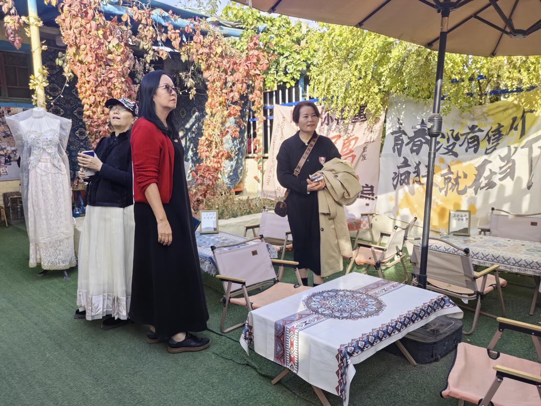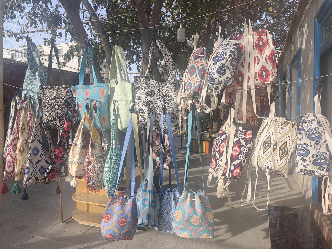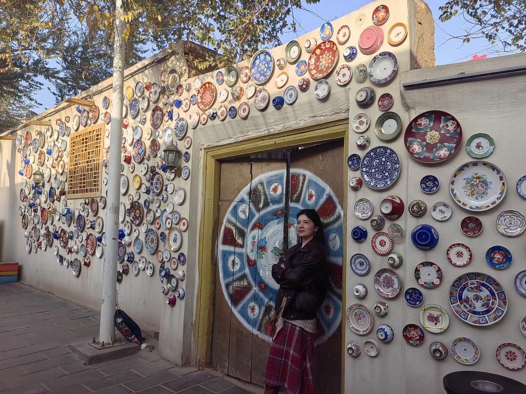 沿着小巷漫步,两侧极具民族特色的建筑细节成为“打卡热点”:有的大门雕刻着缠枝莲纹样,有的门楣装饰着彩色木雕,还有的院墙用彩色石膏勾勒出几何图案,每一扇门都是一件独特的艺术品。巷内的商品展示区里,手工刺绣的挂毯、铜制的民族乐器、绘有龟兹壁画元素的陶器整齐陈列,浓郁的民族风情扑面而来,让代表们不时停下脚步,与摊主交流手工艺品的制作技艺。