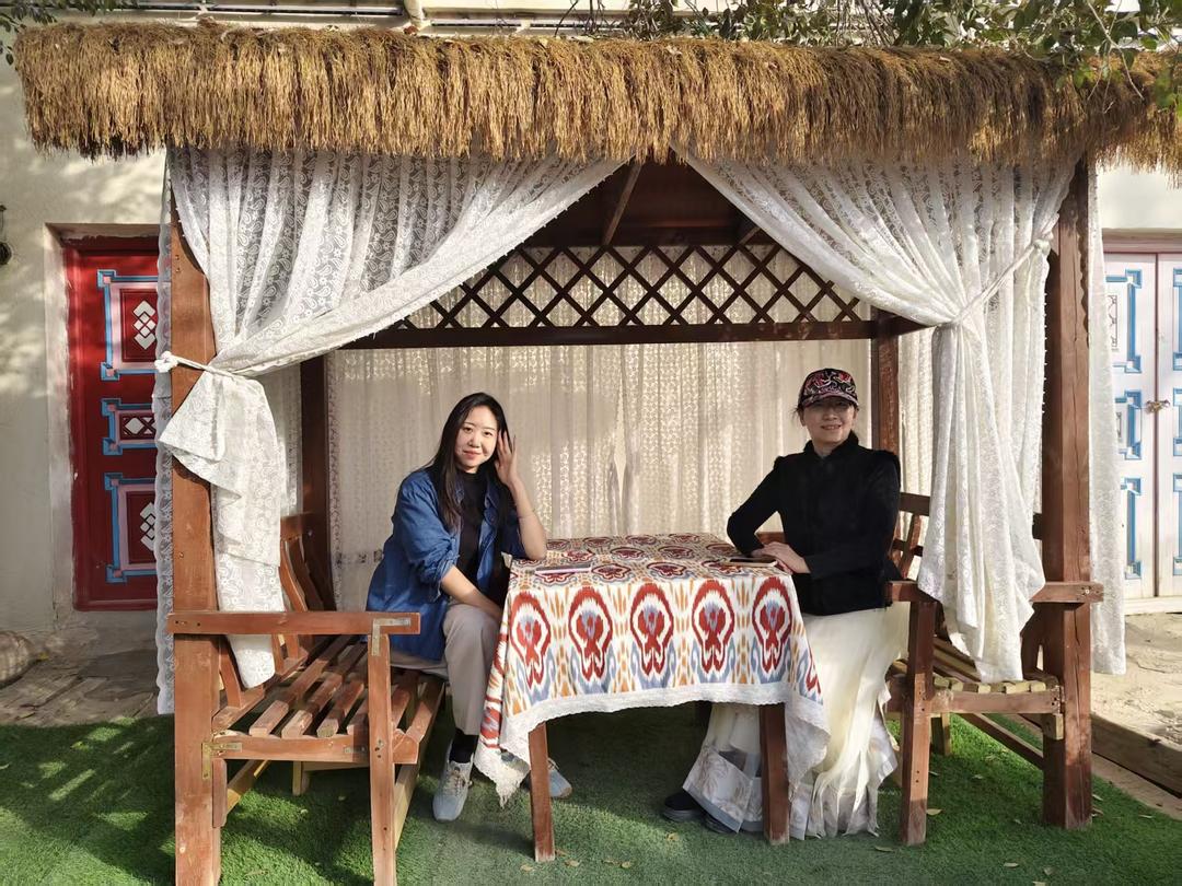 非遗文化展示区更是让代表团驻足良久。民间艺人弹起都塔尔,唱起婉转悠扬的库车民歌,熟悉的旋律唤起了在场不少人的记忆;几位白发老人坐在巷口的长椅上晒太阳、拉家常,脸上洋溢着安逸平和的笑容,生动的生活场景让代表们直观感受到当地居民的日常。“不仅看到了老城区的历史风貌,更感受到了这里真实的生活气息。”一位来自欧洲的华文媒体代表表示,这样的“活态文化”比单纯的古迹更有感染力,也更能让海外读者理解库车的多元魅力。