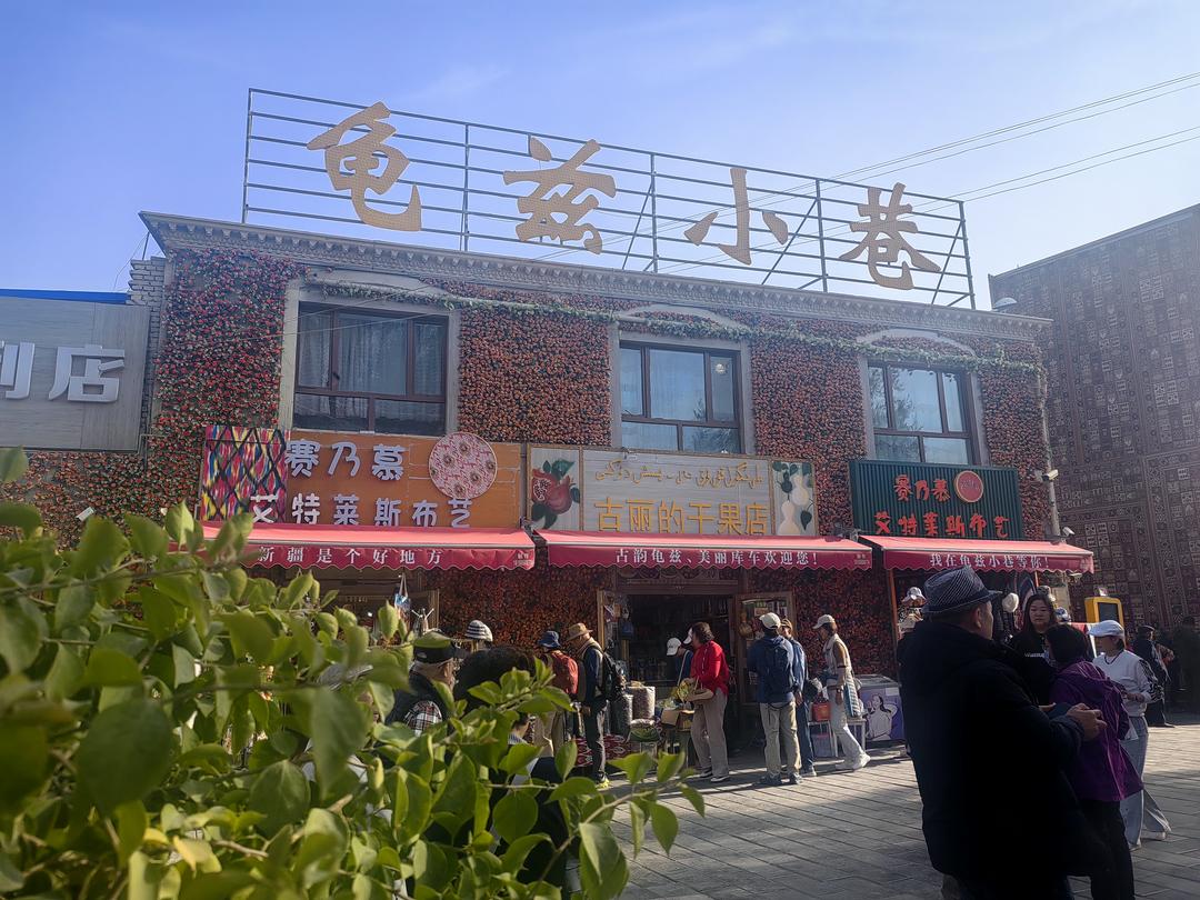 作为库车老城晚清至民国初期街巷格局与建筑风貌保存最完整的街区,龟兹小巷一砖一瓦都镌刻着岁月痕迹。踏入巷口,高大的古树遮蔽着阳光,斑驳的墙面映照着古民居群的错落轮廓,晚清风格的木门与民国特色的窗棂相映成趣,每一处细节都散发着“活着的历史”的厚重感。与其他历史街区不同,这里并非静态的“古迹标本”——经过保护性打造,传统街巷肌理被完整保留,同时融入现代生活元素,咖啡馆的香气,老宅子改造的文创空间里陈列着民族手工艺品,实现了“古朴风貌”与“现代活力”的无缝衔接。
