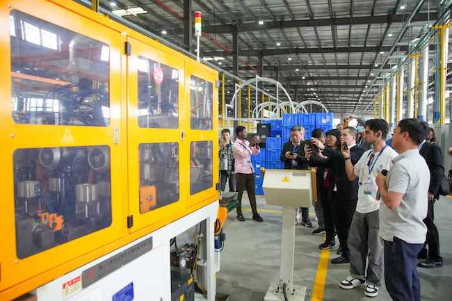Members of the Media Tour Visiting the Workshop of Liuzhou Guiqiao Cable Co., Ltd. Photo by: Chen Guanyan