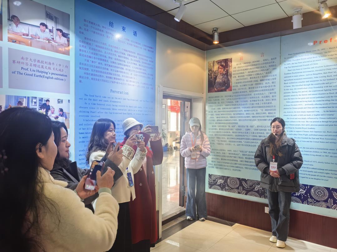 12月17日下午,由安徽省侨联主办,蚌埠、宿州、淮北侨联承办的2025海外华文媒体安徽行的代表们走进位于宿州学院图书馆四楼的赛珍珠纪念馆,在一张张老照片、一件件文献史料中,探寻这位“沟通东西方文明的人桥”与宿州的深厚渊源。