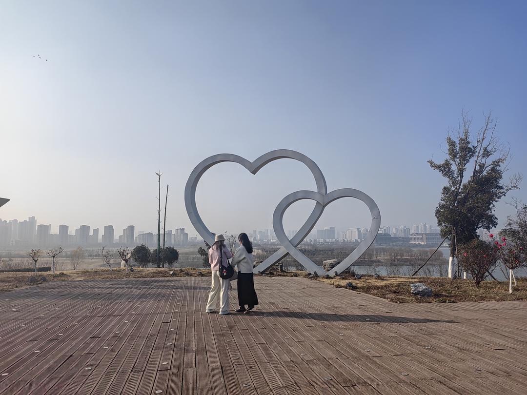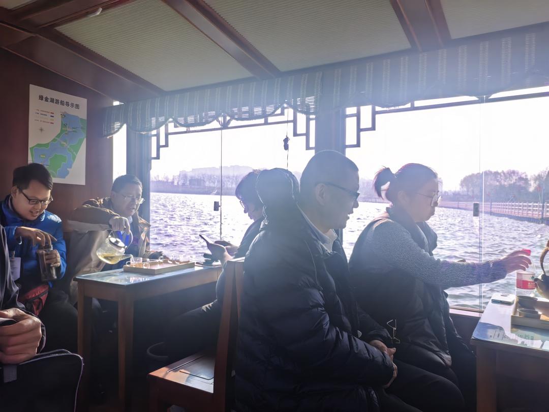 游船缓缓驶离码头,清风拂面,波光粼粼的湖面在阳光照耀下熠熠生辉。代表们凭栏远眺,环湖绿植繁茂葱郁,错落有致的景观带与澄澈湖水相映成趣。行至湖心,众人登上圆梦岛,岛上草木葳蕤,步道蜿蜒,极目远眺,绿金湖与城市建筑交相辉映,一幅“城在湖中,湖在城中”的生态画卷徐徐展开。谁能想到,眼前这片风光旖旎的水域,曾是满目疮痍的采煤沉陷区。