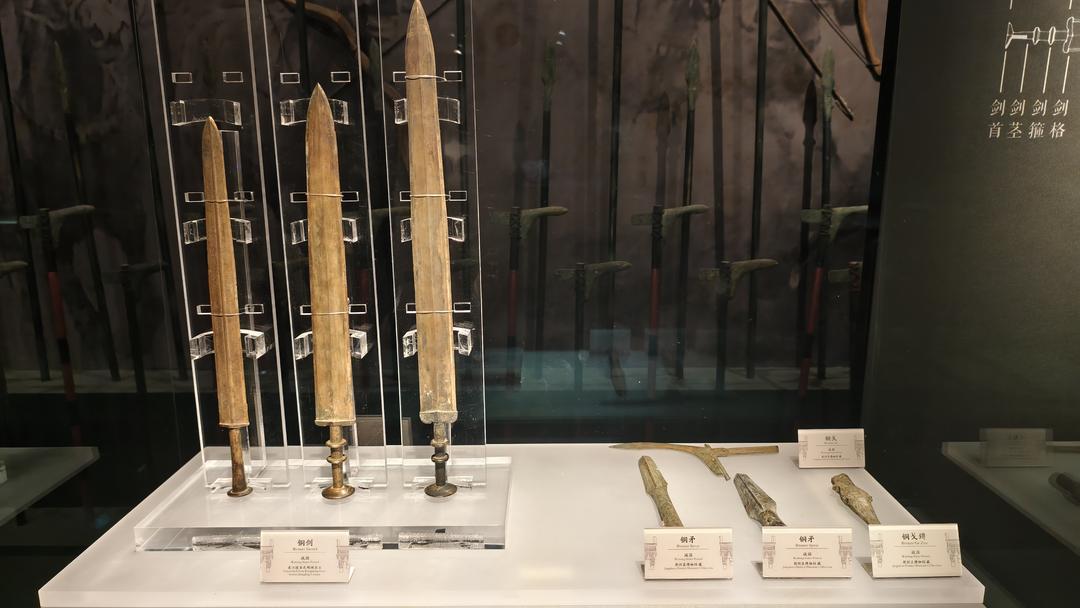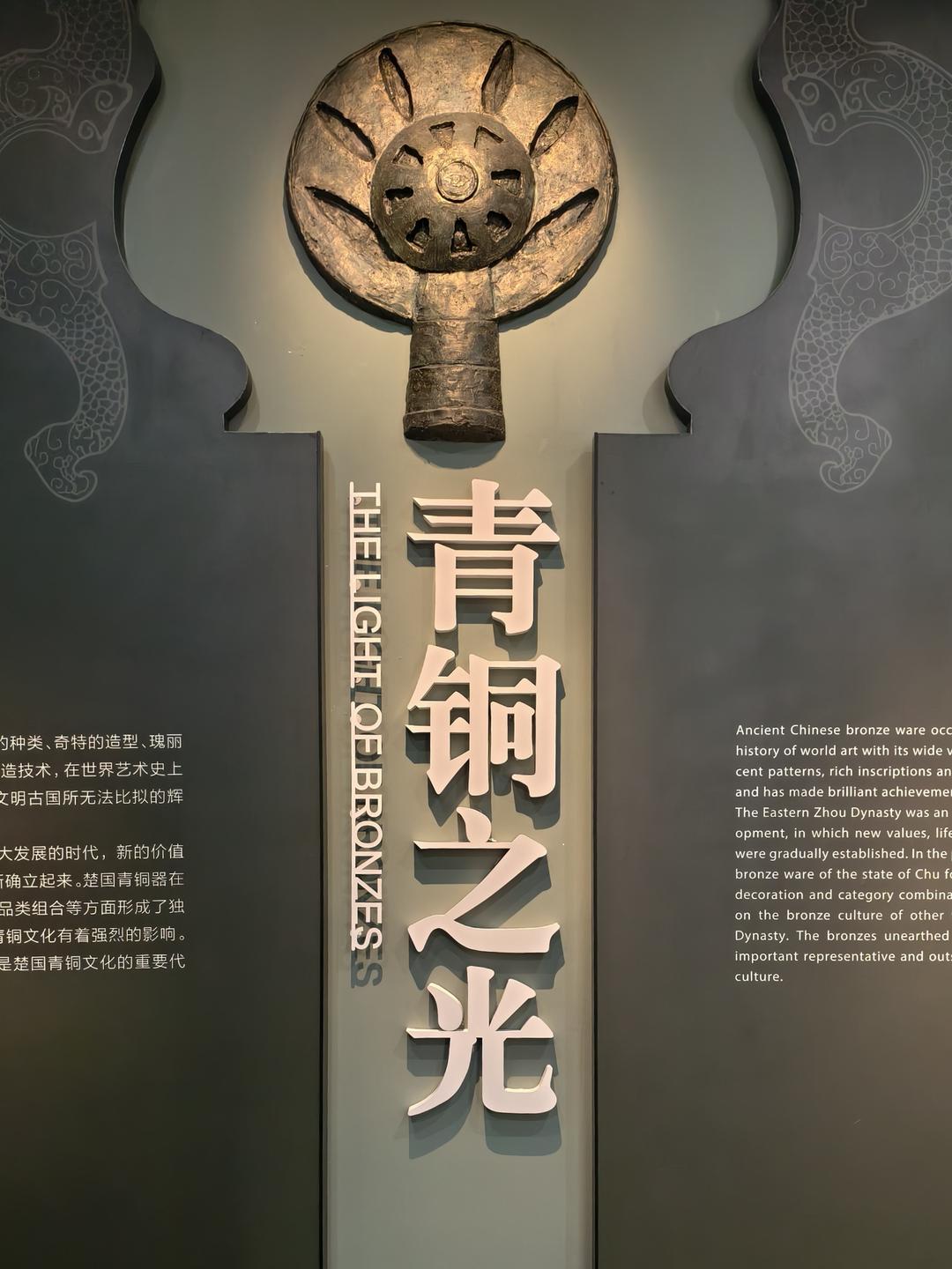 移步“青铜之光”展厅,青铜重器气势恢宏,纹饰繁复精美,造型古朴庄重。食器、酒器、兵器、礼器,种类繁多的青铜器,见证着楚国青铜铸造技艺的巅峰。斑驳的铜锈是岁月的印记,精美的纹路是文明的密码,每一件器皿都承载着楚国的社会生活与精神信仰。凝视这些青铜瑰宝,仿佛能看见楚地工匠烈火熔铜、精心铸器的场景,感受到劳动人民的勤劳与智慧,感受到楚文化兼容并蓄、大气磅礴的精神内核。