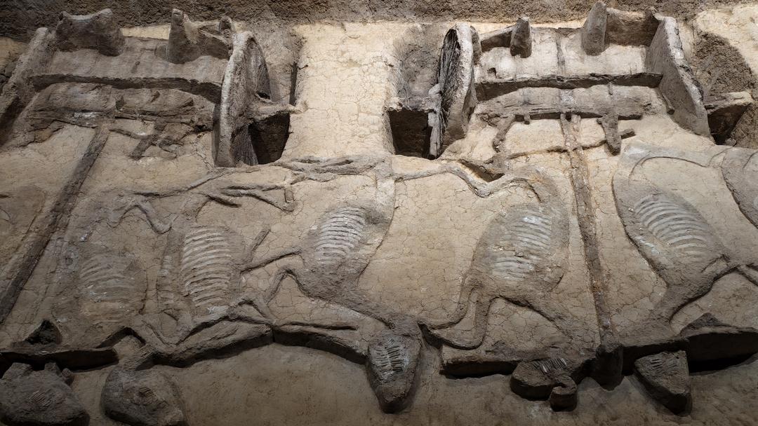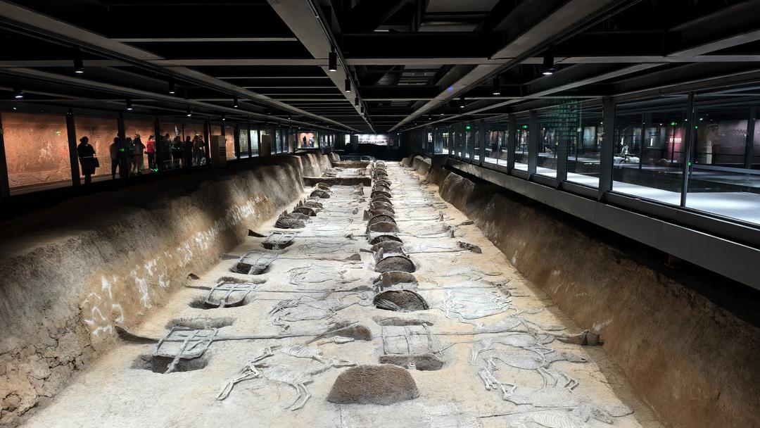 步入景区,厚重的历史气息扑面而来。七百三十一亩的土地上,主冢巍峨,祔冢相依,殉葬墓错落有致,祭祀坑肃穆庄严,四十座车马坑纵横排列,每一处遗迹都镌刻着楚国的辉煌过往。据介绍,2006至2009年的抢救性发掘,让三千余件珍贵文物重见天日,而八千二百平方米的车马阵展厅,更是以真车真马的遗存,将楚国“千乘之国”的磅礴气势展现得淋漓尽致,“北有兵马俑,南有车马阵”的美誉,在此刻变得具象而鲜活。