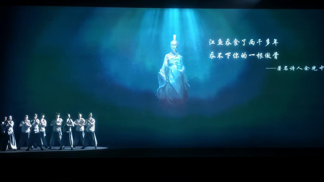《屈原》的演出,是一场直击心灵的精神洗礼。幻影成像技术还原出战国风云,楚地山川壮阔,郢都繁华如梦,而屈原的身影立于天地之间,孤高而坚定。我们看见他少年意气,心怀家国;看见他直言进谏,坚守正道;看见他遭谗被疏,仍心系苍生;看见他汨罗江畔,纵身一跃,以生命殉理想。光影交错中,他的《离骚》《天问》穿越千年,字字泣血,声声铿锵。那是对家国的赤诚,对正义的执着,对天地的追问,早已融入中华民族的精神血脉。国际主题娱乐协会的赞誉,是对艺术的认可,更是对屈原精神的致敬。当帷幕落下,观众心中涌动的,是对先贤的敬仰,是对家国情怀的深刻共鸣。