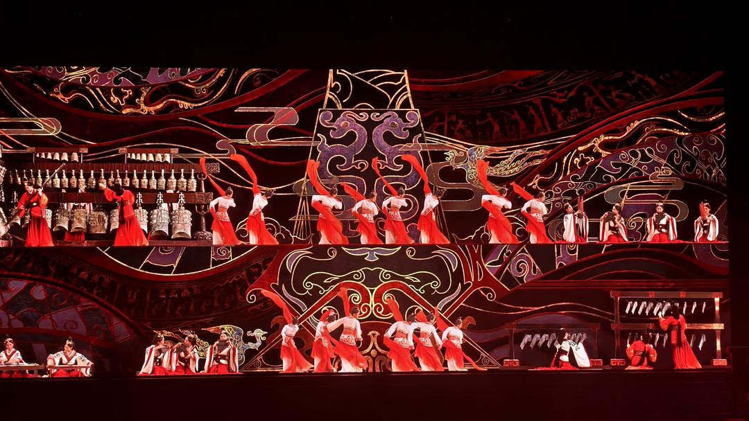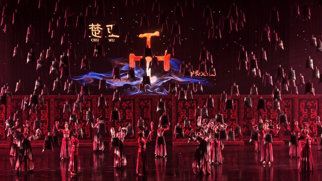 若说《屈原》是风骨凛然的史诗,《楚乐》便是温婉灵动的画卷。编钟奏响,清音绕梁,琴瑟和鸣,古韵悠扬。身着楚服的舞者身姿翩跹,衣袂飘飘,再现楚地巫风与礼乐之美。演出以楚文化为根基,将古老的乐器、舞蹈、礼仪融为一体,还原出荆楚大地的浪漫与瑰丽。钟鼓之乐,是宫廷的庄严;长袖善舞,是民间的灵动;楚辞吟唱,是文化的传承。每一个音符都流淌着楚地的灵秀,每一个动作都承载着千年的底蕴。两大剧目同登全国旅游演艺精品名录,以不同的艺术形态,展现荆楚文化的刚柔并济。
