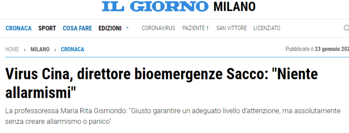 从多家意大利媒体的报道来看,吉斯蒙多最早是于1月23日中国武汉的疫情彻底暴发并引起全世界关注后,开始出现在媒体上谈论意大利该如何应对疫情的。