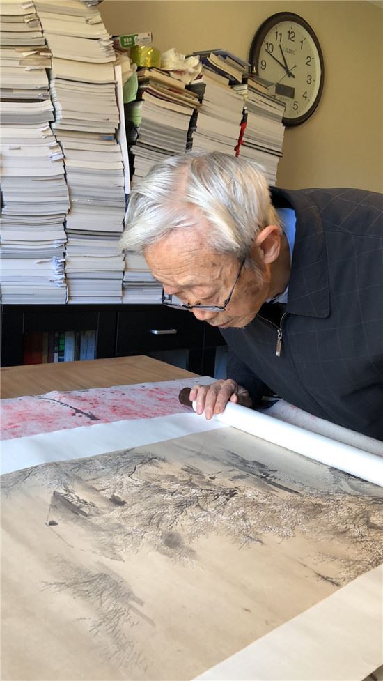 交谈中,敢峰向我坦言:"我不是狂人,怎么会不知道这样做严重影响健康?越界太远了啊!有时真是感到不行了,仍用手按着腰操作iPad。不愿让家人知道。夕阳不能老等我啊!不赶路不行啊!"