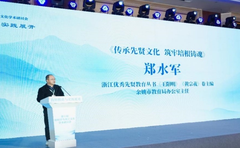 浙江优秀先贤教育丛书《王阳明》《黄宗羲》卷主编、余姚市教育局办公室主任郑水军在演讲中分享了余姚以传承先贤文化为核心,筑牢培根铸魂教育根基的实践探索。当地教育以阳明文化为底色深耕幸福教育,通过编写专题教材、推出地方读本等具体举措,为破解传统文化传承难题提供了切实可行的余姚方案。