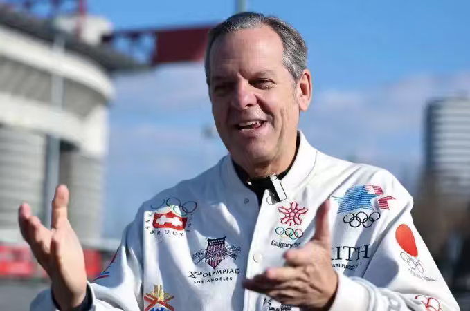 1月26日,米兰冬奥会开幕式创意团队负责人马尔科·巴利奇在意大利米兰的圣西罗体育场外接受新华社记者采访。米兰冬奥会开幕式将于2月6日在圣西罗体育场拉开帷幕。新华社记者 杜潇逸 摄