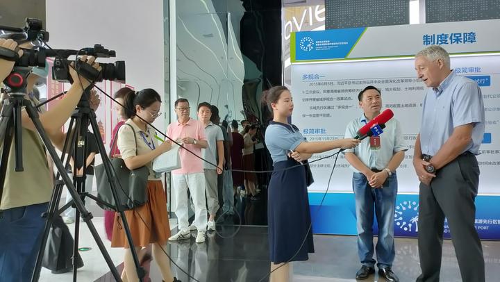 为什么选择来乐城先行区工作?海外华文媒体对博沛进行采访。博沛说,乐城先行区是国际最先进的技术率先进入中国的窗口。通过对乐城先行区的实地走访和了解,他看到了乐城未来发展的多种可能性,深受鼓舞,因此产生加入这个团队的愿望。