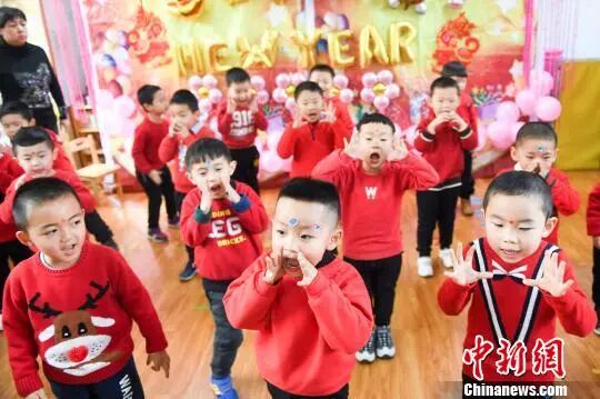 资料图:萌娃们各秀才艺迎接新年。 武俊杰 摄
