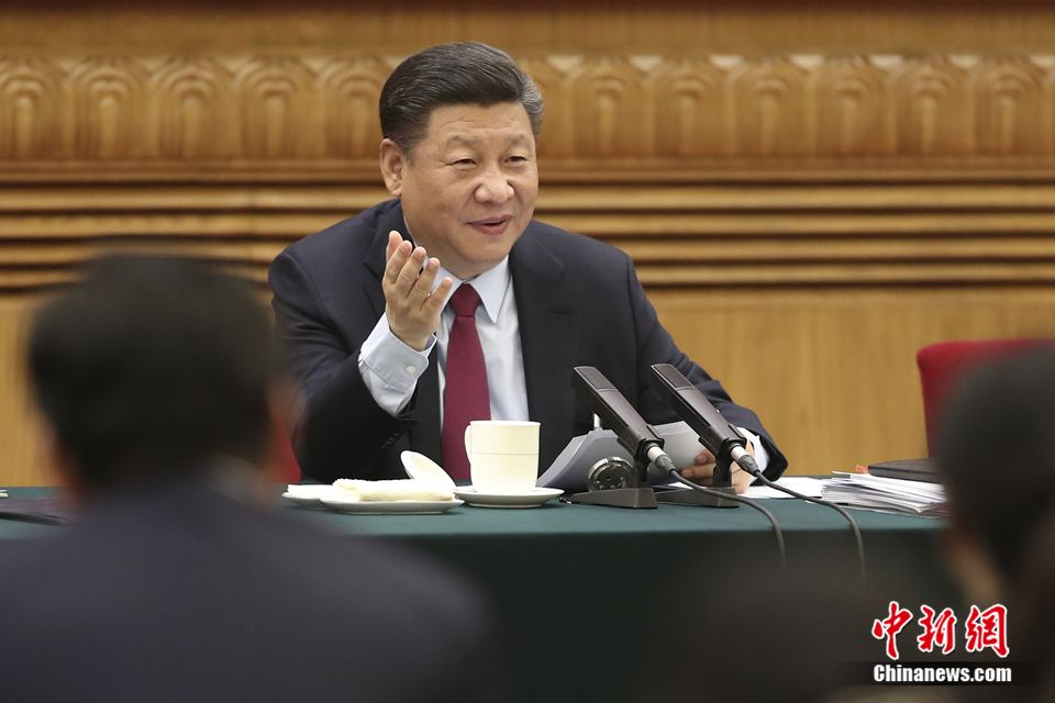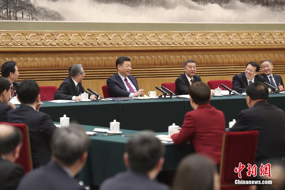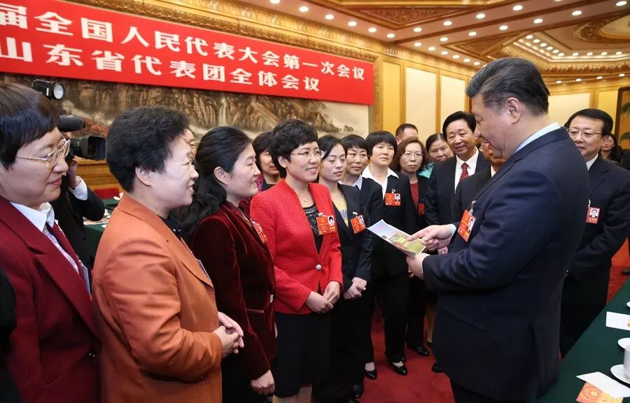 8日上午,习近平到山东代表团参加审议。正值“三八”国际劳动妇女节,习近平代表党中央向女代表、女委员、女工作人员及全国各族各界妇女同胞,致以节日的祝贺和诚挚的祝福。