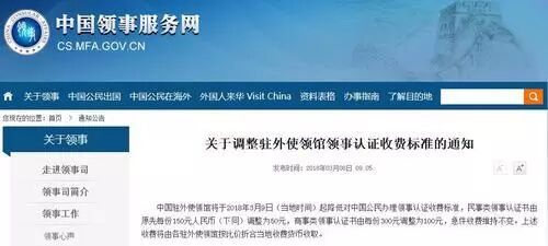 第三是从3月9日开始,中国所有驻外使领馆将统一大幅下调中国公民办理领事认证的费用,降幅达到三分之二,初步估算每年将为中国公民和企业节约上千万元人民币。