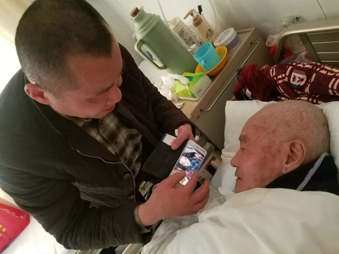 我坐在床头,抚摸着爸爸的额头说:“昨天是大年三十,全家都到医院来跟您过年了,记得吗?还一起照了全家福相呢。”我拿出手机,翻出全家与他合影的照片,指着一个个放大的人头告诉他,一遍一遍讲述全家一起看他的情景……他眨了眨眼睛。我猜想,他听清了我的话,也忆起了除夕全家团聚的情景。