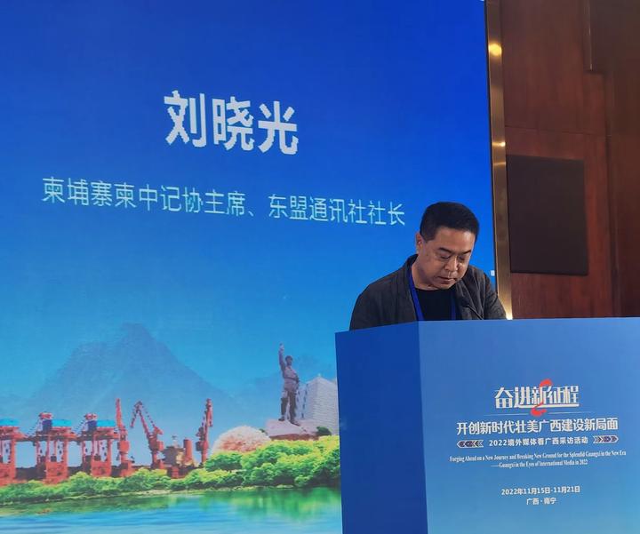 启动仪式上,中国新闻社总编辑张明新发表视频讲话,广西壮族自治区党委宣传部常务副部长、自治区电影局局长崔佐钧发表热情洋溢的讲话并为活动启动授旗,东盟通讯社社长刘晓光代表海外媒体发言。