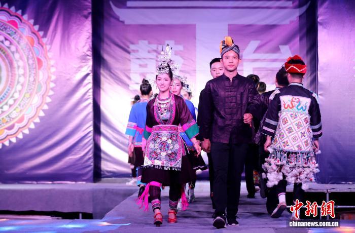 近日,广西三江侗族自治县独峒镇“画里侗乡·非遗传承”鼓楼T台秀在三江鼓楼坪精彩上演,三江农民画、侗族器乐、侗族刺绣、多耶等非遗瑰宝与时尚T台激情碰撞,为观众献上一场民族与潮流交融的视听盛宴。图为活动现场。龚普康 摄